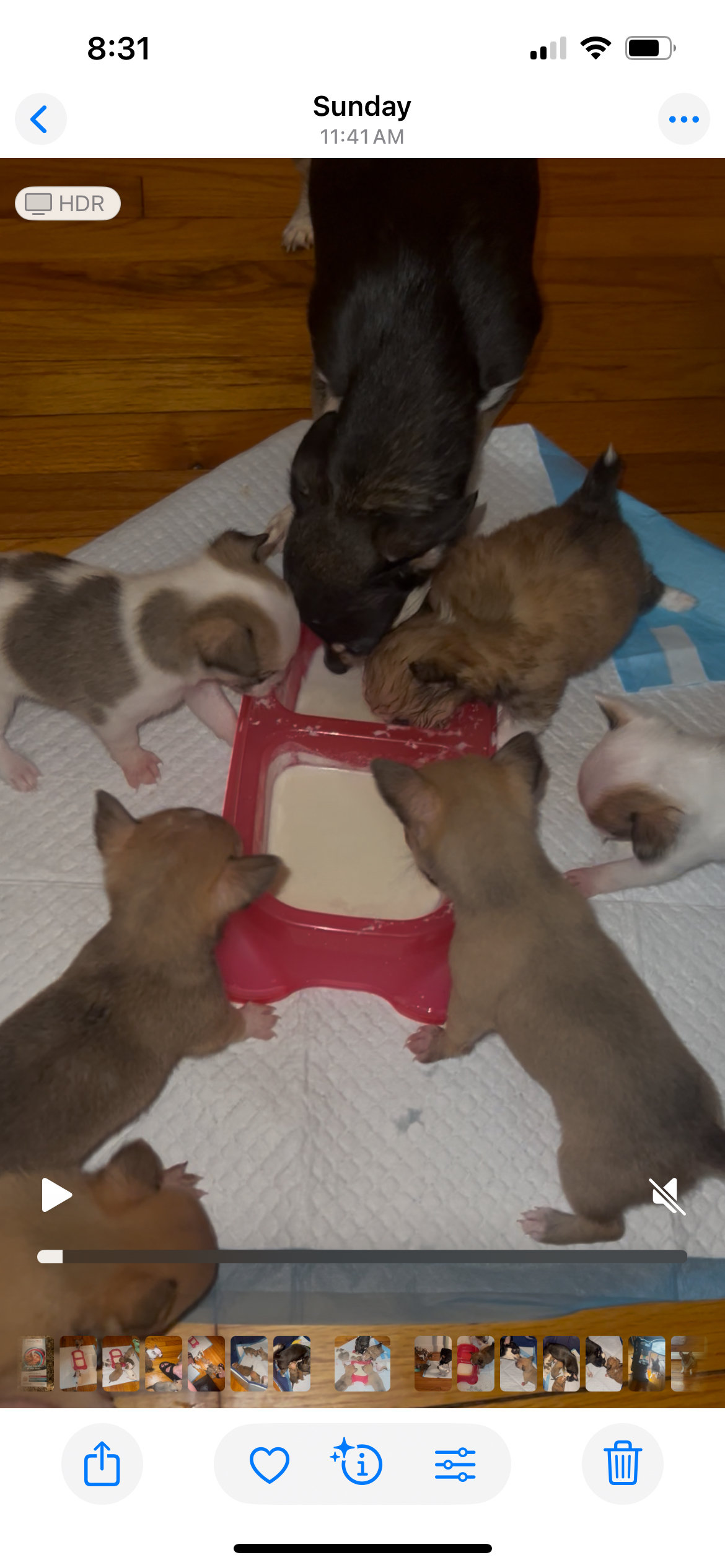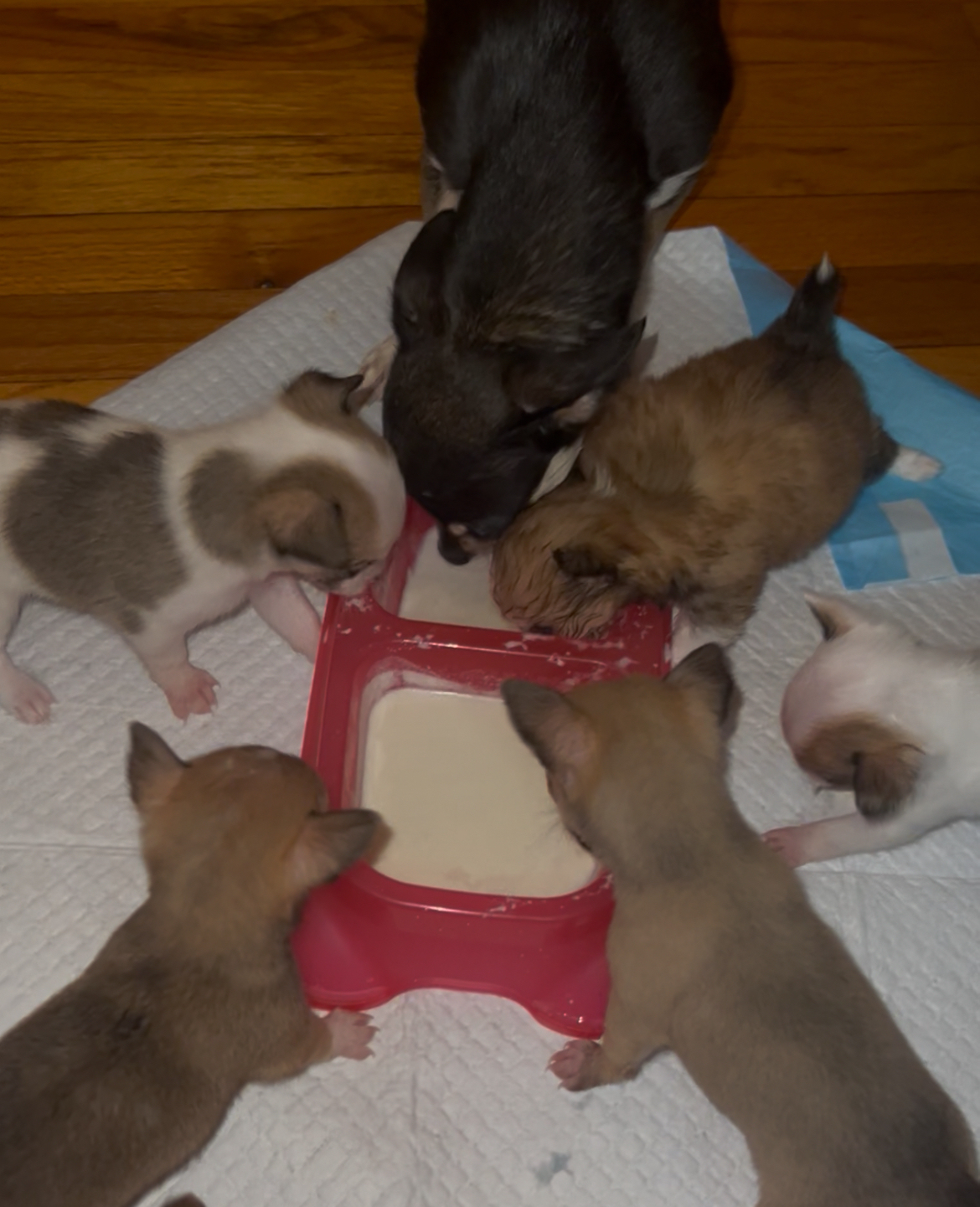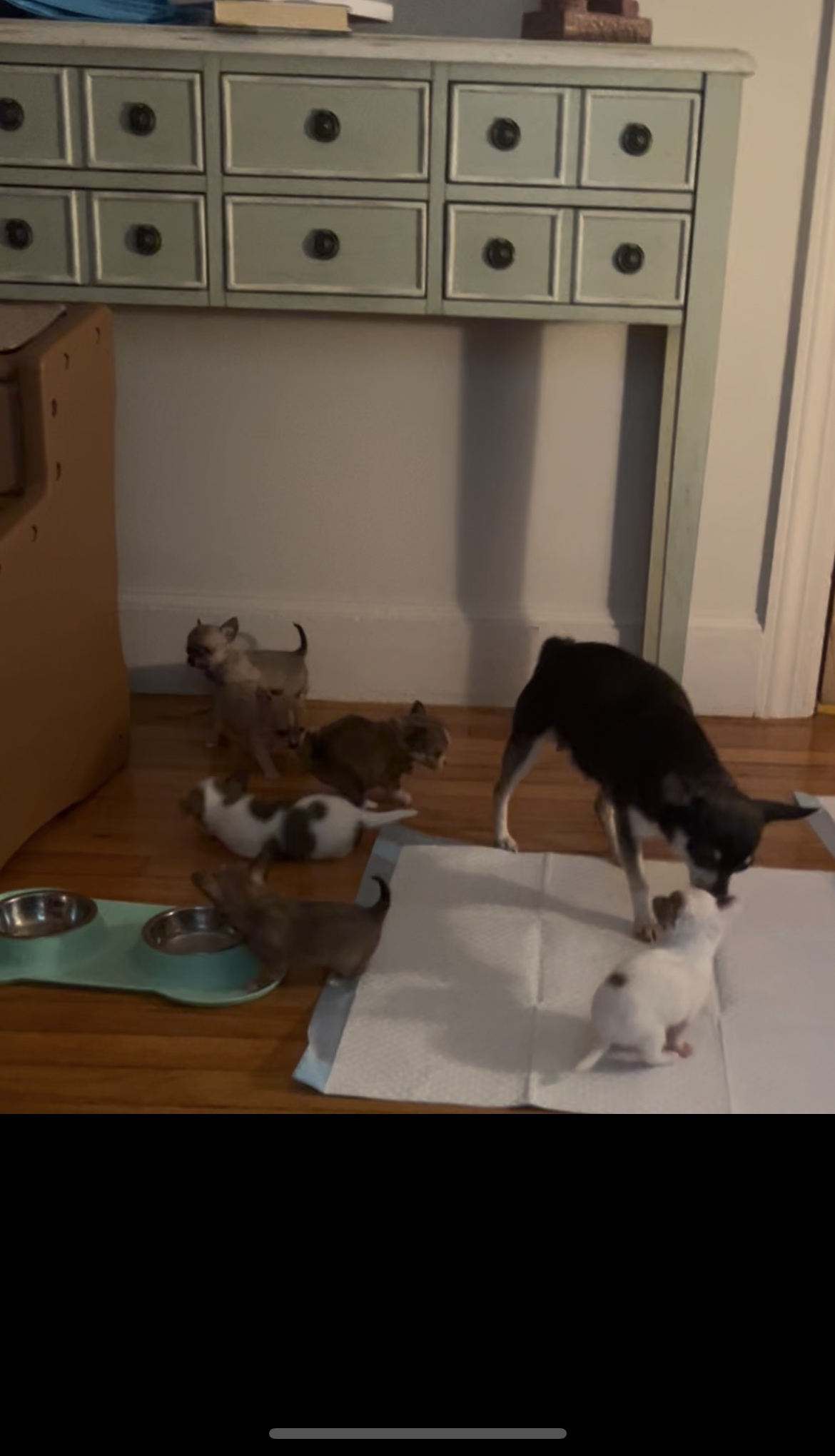 "November litter" ( 4 females, 1 male) - black merles, black with white marking